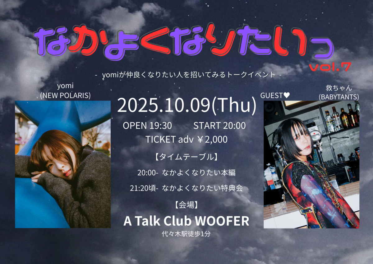 【出演】yomi(NEW POLARIS)、【ゲスト】救(BABYTANTS)