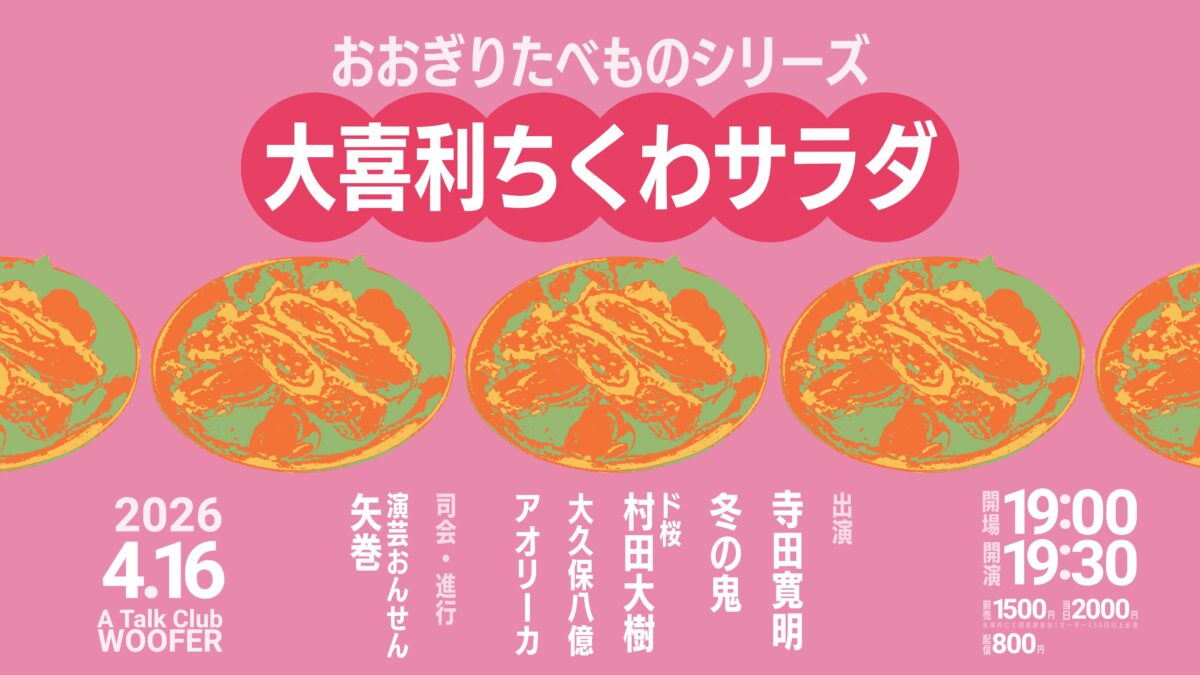 約90分間ずっと大喜利をする企画SNSハッシュタグ:#大喜利ちくわサラダ
